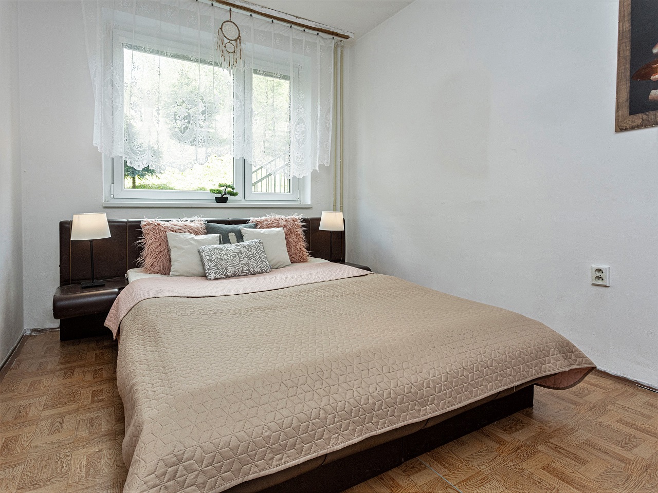 Ve výhradním zastoupení majitele nabízím k prodeji velmi dobře udržovaný družstevní byt 3+1 na malém a klidném sídlišti ve Velkých Hamrech. Svou velikostí a dispozicí zaujme buď mladou rodinu s dětmi nebo seniory, kteří chtějí trávit odpočinek v přírodě v klidném místě na horách avšak v blízkosti veškeré občanské vybavenosti. Byt se nachází ve zvýšeném přízemí (2. podlaží). Na celkové podlahové ploše 79,2 m2 se nachází prostorný obývací pokoj 19,5 m2 s východem do zasklené lodžie 4,5 m2, dále z podlouhlé předsíně 14,8 m2 vstoupíme do kuchyně s jídelním koutem 11,4 m2, ložnice 12,3 m2 a dětského pokoje 12 m2 s výhledem do zeleně, koupelny 3,15 m2 a samostaného WC. V bytě proběhla částečná modernizace - výměna plastových oken s dvojitými termoizolačními skly, rekonstrukce koupelny s vanou a zasklení lodžie. Ostatní místnosti jsou připraveny na individuální úpravy nového majitele. K dispozici je rovněž sklepní kóje 3 m2.