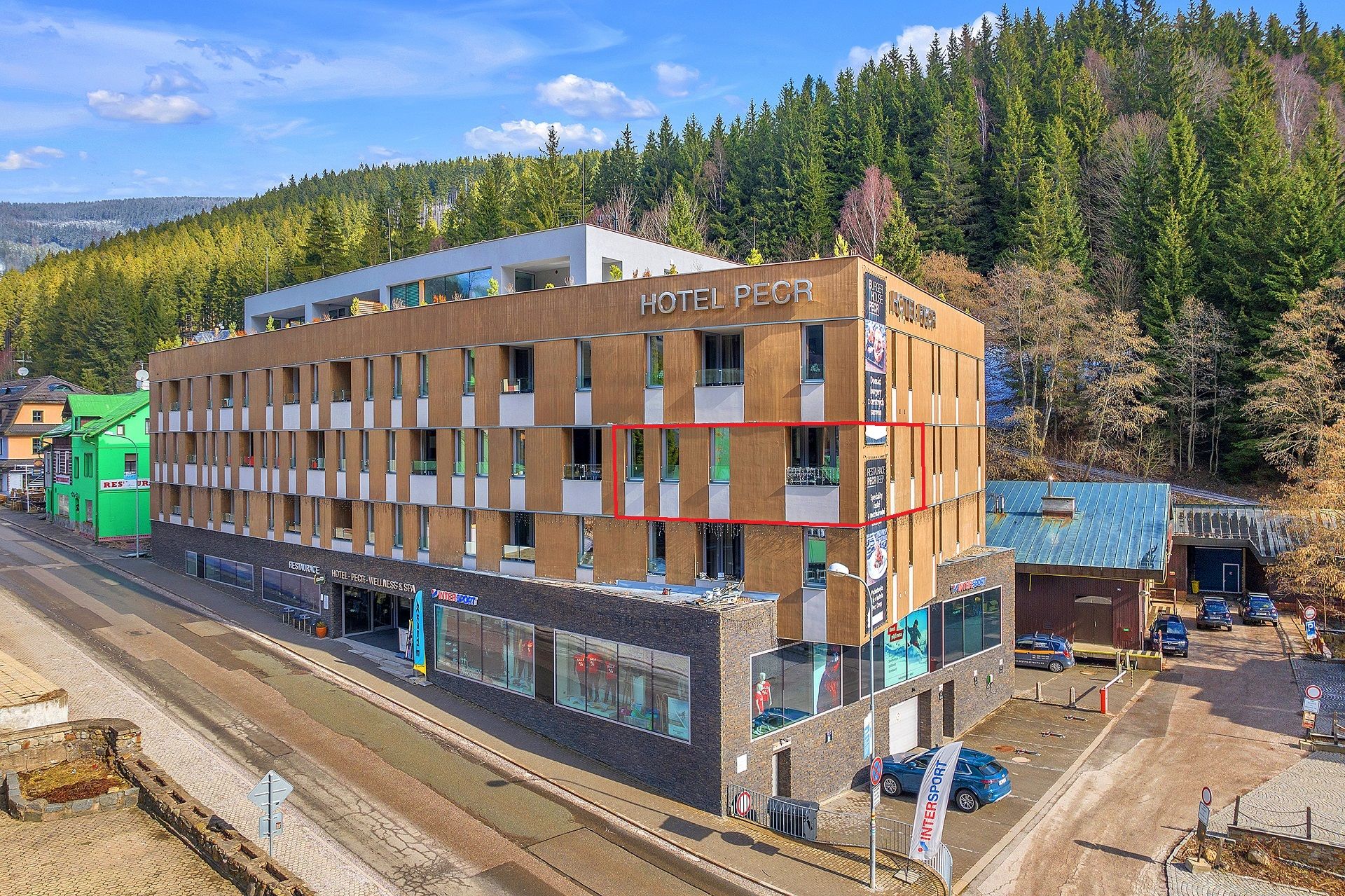V exkluzivním zastoupení majitele si Vám dovoluji nabídnout prodej plně vybaveného apartmánu 2+kk (59,8 m2), s lodžií (2,5 m2), garážovým stáním a zděnou sklepní místností. Nachází se v moderním hotelovém komplexu ****PECR WELLNESS & SPA, v centru Pece pod Sněžkou, nedaleko od nástupní stanice lanovky na Sněžku. Jedná se o největší dispozici apartmánu v objektu s okny na dvě světové strany.